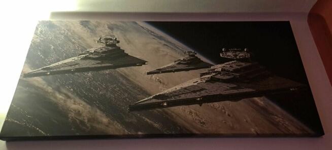 Posiadam do sprzedania obraz na płótnie przedstawiający sceny z uniwersum Gwiezdnych Wojen. Widoczne są trzy imperialne ...