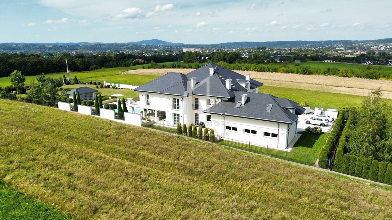 Biuro Nieruchomości Daniel Ulaszek ma zaszczyt przedstawić Państwu wyjątkową i niezwykle ekskluzywną rezydencję zlokalizowaną w malowniczej części Podkarpacia na kameralnych obrzeżach Jasła. To nieruchomość, która stanowi kwintesencję luksusu, harmonijnie łącząc prestiż nowoczesnej architektury z pięknem otaczającej natury.Ta unikatowa nieruchomość oferuje nie tylko najwyższy standard życia, ale również idealne połączenie zacisza strefy podmiejskiej z niesamowitymi walorami widokowymi na Beskid Niski, a przy sprzyjającej pogodzie również szczyty Tatr. Nieruchomość usytuowana jest przy spokojnej ulicy, z mnóstwem otwartej, zielonej przestrzeni, co gwarantuje ciszę, relaks i poczucie swobody z jednoczesną bliskością miejskich udogodnień, to enklawa prywatności i spokoju, a zarazem miejsce stworzone dla najbardziej wymagających koneserów stylu i elegancji.