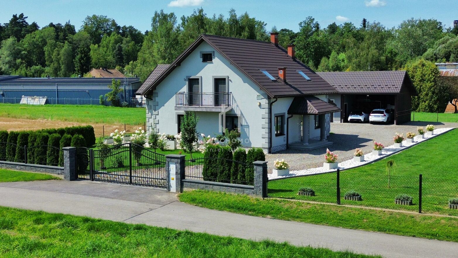 Mamy ogromną przyjemność zaprezentować Państwu wyjątkowy, w pełni wyposażony dom o wysokim standardzie, starannie zaprojektowany tak by zapewnić całej rodzinie komfortowe i wygodne warunki do życia.Nieruchomość ta łączy w sobie praktyczne i funkcjonalne rozwiązania architektoniczne z komfortem prywatności strefy podmiejskiej, które zapewnia ciszę, dystans od zgiełku miasta, a rozciągające się nieopodal lasy dają bufor zieleni i czystego powietrza.