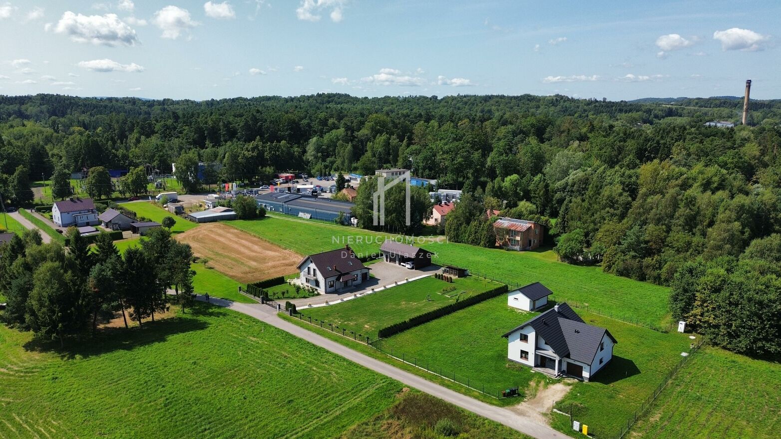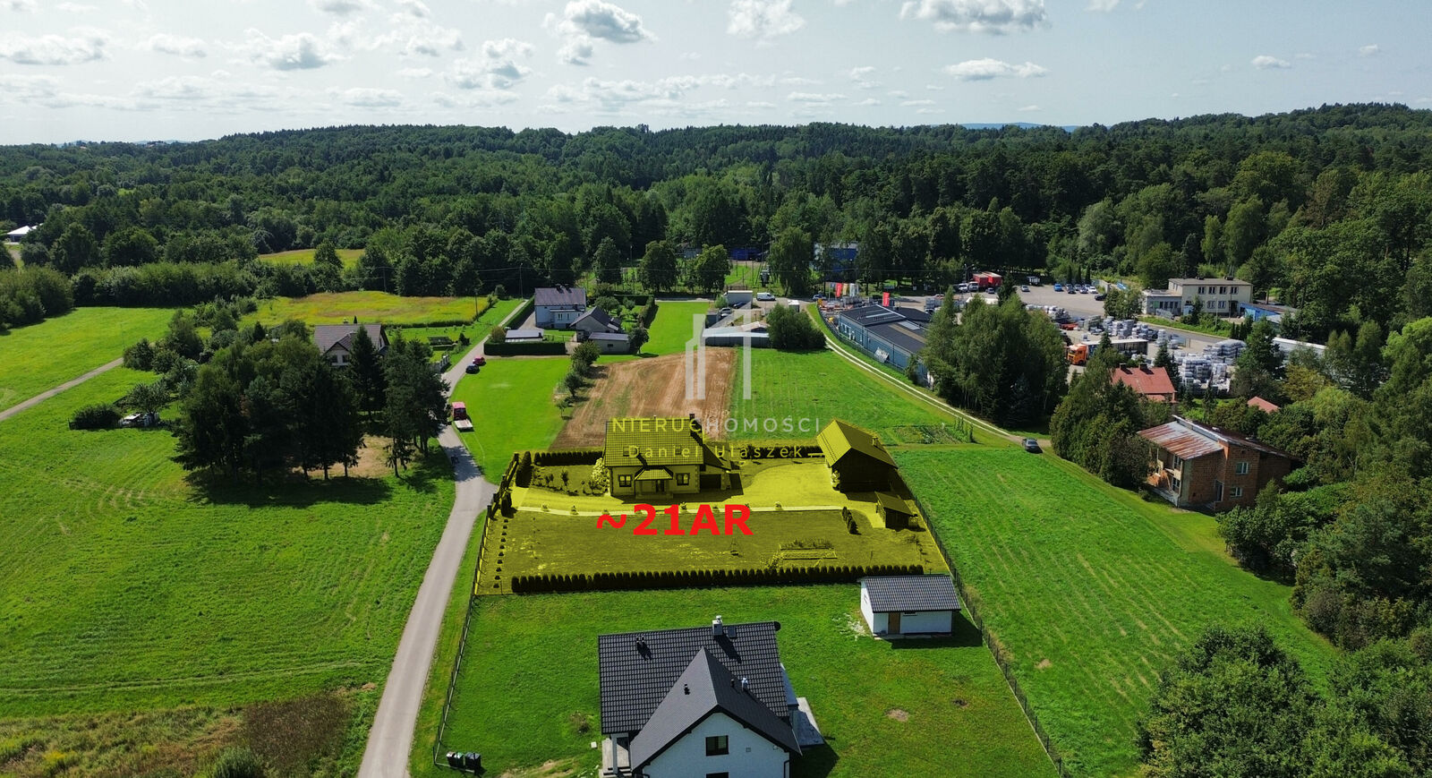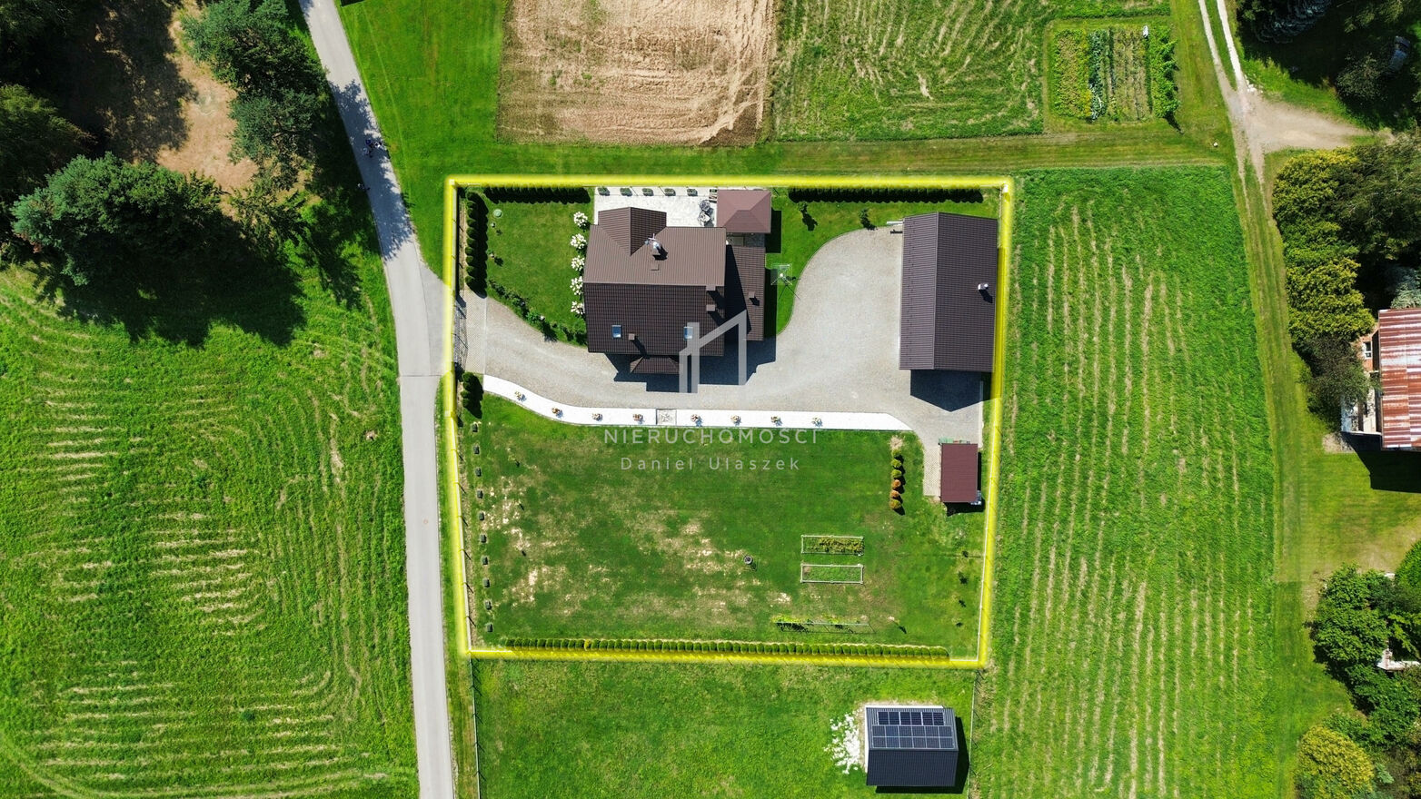 Budynek posadowiony został na płaskiej działce w kształcie zbliżonym do prostokąta o powierzchni 21arów (0,2127ha), przy czy lokalizacja budynku przy południowej krawędzi nieruchomości pozwoliła wyodrębnić spore podwórko, które jednocześnie otwiera możliwość budowy budynku gospodarczo-garażowego, a nawet kolejnego domu w przyszłości.