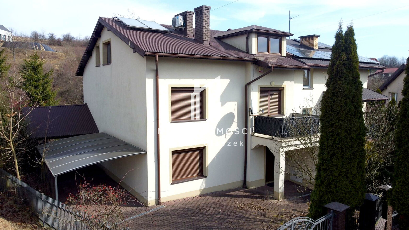Dom łączy wygodę życia w mieście z prywatnością i spokojem typowym dla zabudowy jednorodzinnej.