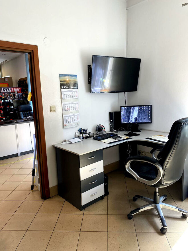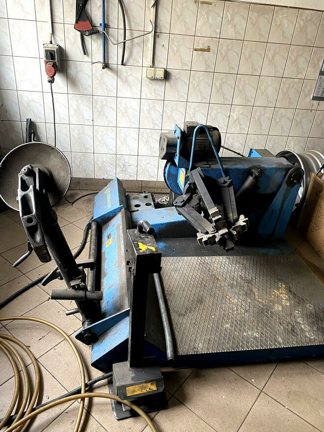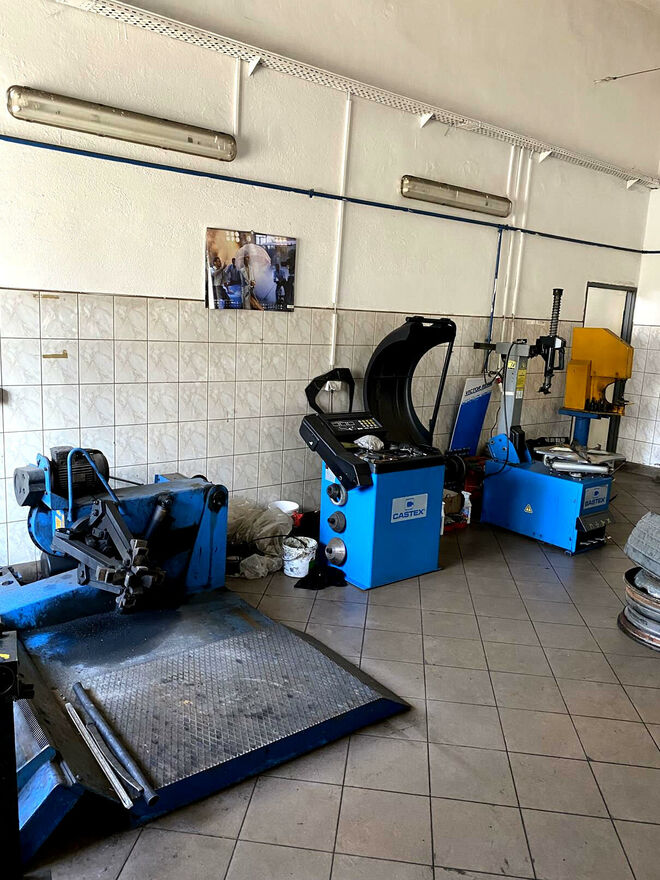 Warsztat jest doskonale wyposażony, istnieje możliwość zakupu wraz z całym osprzętem, w skład którego wchodzi: podnośnik kolumnowy, wyważarki kół ciężarowych i osobowych, montażownice kół ciężarowych i osobowych, prasa hydrauliczna, kompresory powietrza oraz podnośnik widłowy.