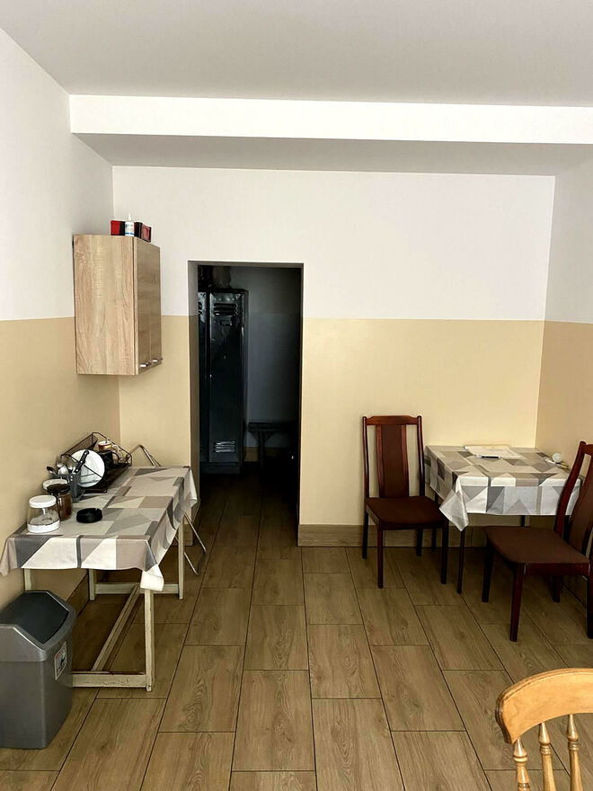 Układ pomieszczeń: sklep ok. 76 m, komfortowe biuro ok. 25 m, pomieszczenie socjalne ok. 38 m, łazienka / myjnia (z prysznicem i pralką) ok. 9 m, toaleta ok. 2,5 m, korytarz ok. 10 m.