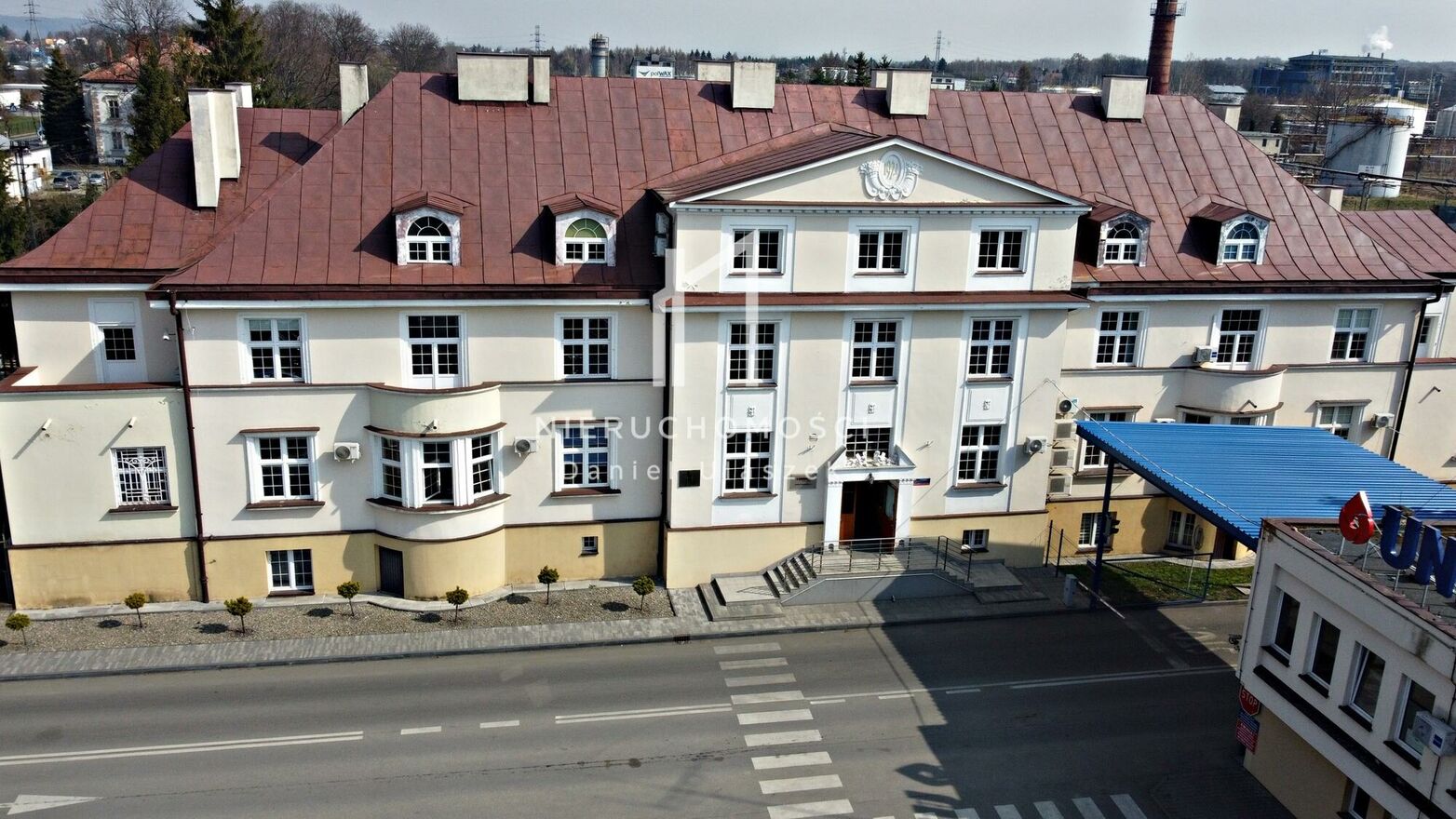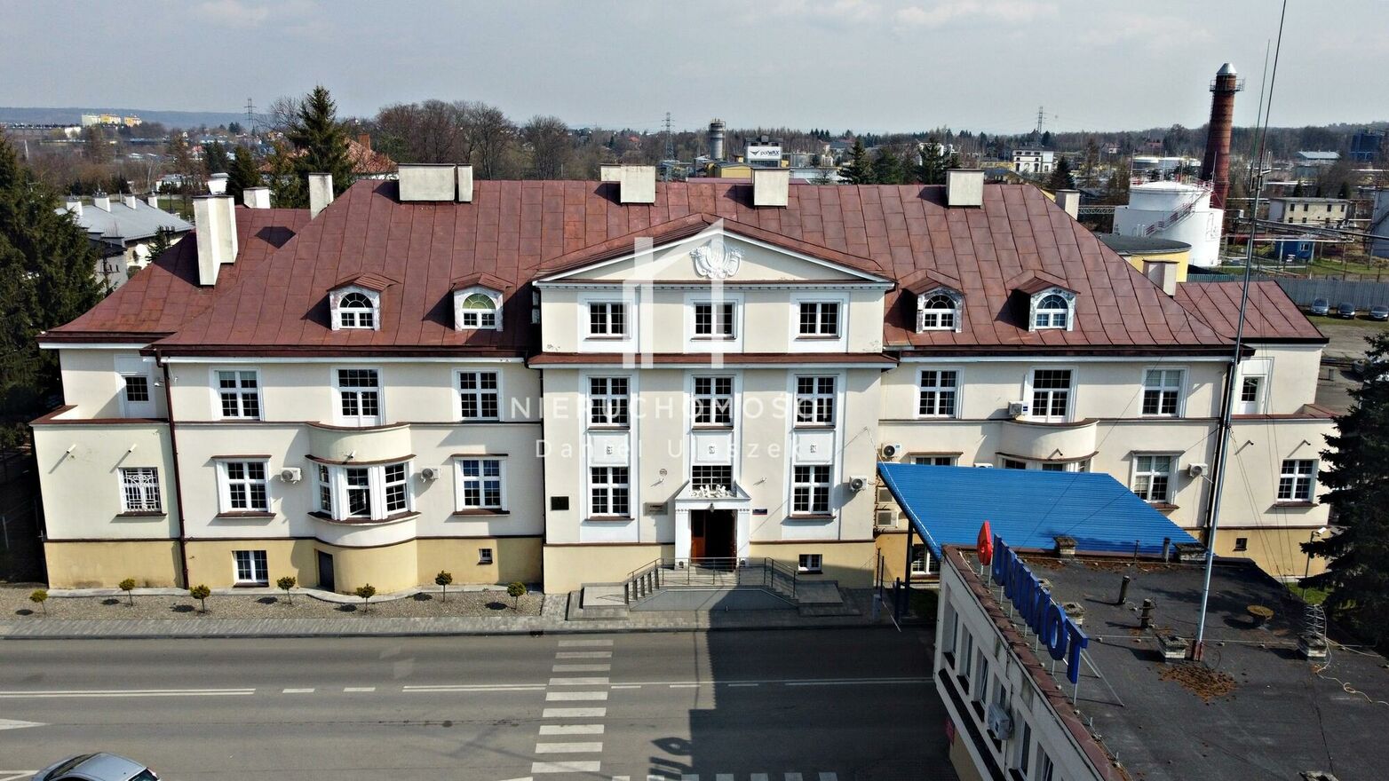 ARCHITEKTURA I CHARAKTER OBIEKTU: rok budowy: 1921 r. budynek wpisany do gminnej ewidencji zabytków, stylowa, symetryczna bryła o reprezentacyjnym charakterze solidna konstrukcja: cegła 3 kondygnacje + pełne podpiwniczenie + strych, dach ocieplony pianą PUR (~30 cm), pokryty blachą budynek otynkowany, wykonane odwodnienie oraz ocieplenie fundamentów Obiekt łączy historyczny prestiż z nowoczesnym standardem użytkowym.