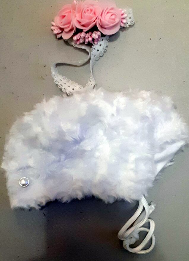 Posiadam do kompletu rajtuzki koloru białego - rozmiar od 56 do 62 cm czyli od 0 do 3 miesięcy . Całość kupiona była w sklepie i wykorzystana tylko raz .