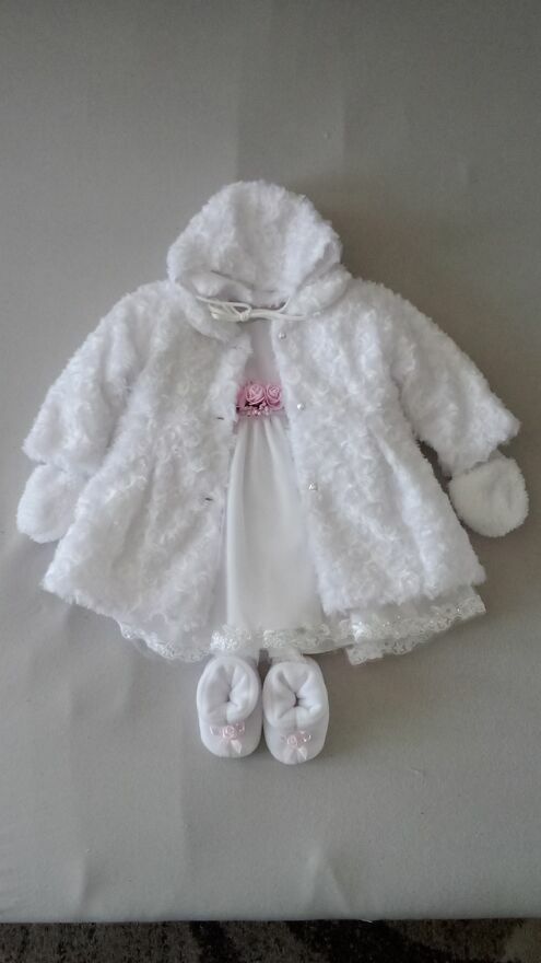 Opis do sprzedaży kompletu do chrztu świętego :Mam do sprzedania komplet do chrztu świętego dla dziewczynki rozmiar - 68cm .
