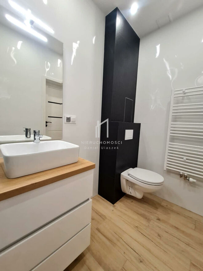 Mieszkanie w przeciągu ostatnich miesięcy przeszło kapitalny remont, który pozwolił na zaaranżowanie zupełnie nowej przestrzeni do życia, w której królują współczesne trendy wykończenia - oparte na harmonijnej stylistyce i dbałości o detale. Całość została wykończona z materiałów klasy premium, co w rezultacie pozwoliło osiągnąć efekt godny podziwu, który zachwyci nie jednego wymagającego klienta.
