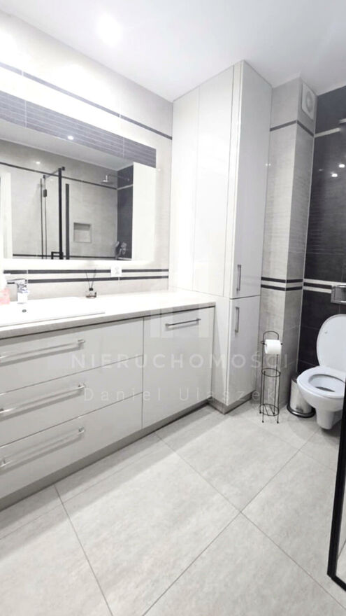 Istotną zaletą prezentowanego mieszkania jest również lokalizacja w spokojnej i prestiżowej okolicy nowopowstałego budownictwa wielorodzinnego z pięknym widokiem na miasto, szczególnie nocą. Ponadto osiedle cechuje się łatwym dostęp do miejskiej infrastruktury i wygodną komunikacją z centrum miasta