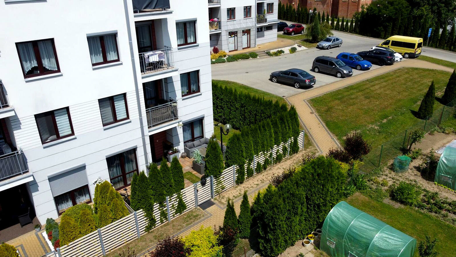 Monitorowany parking dla mieszkańców dostępny przed blokiem.