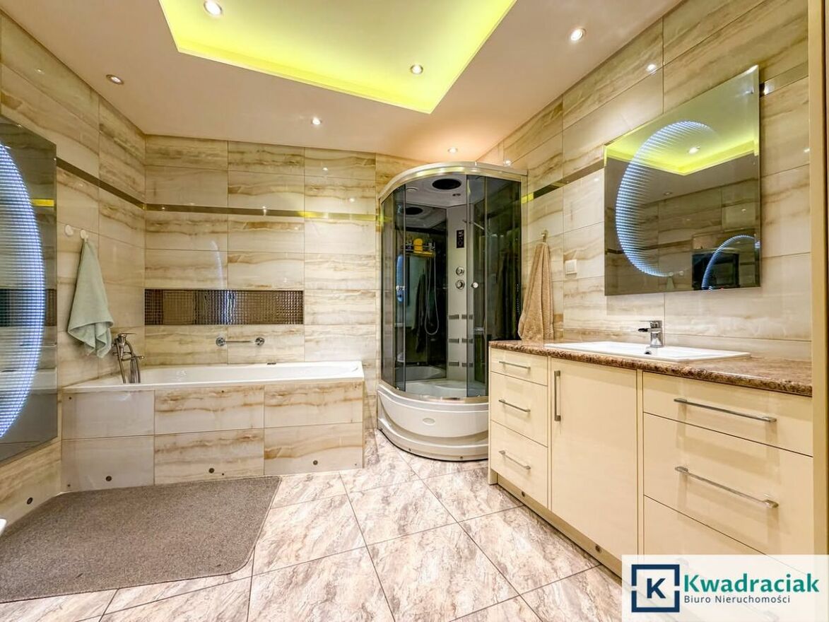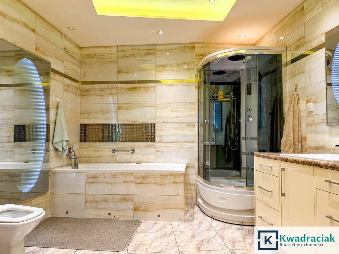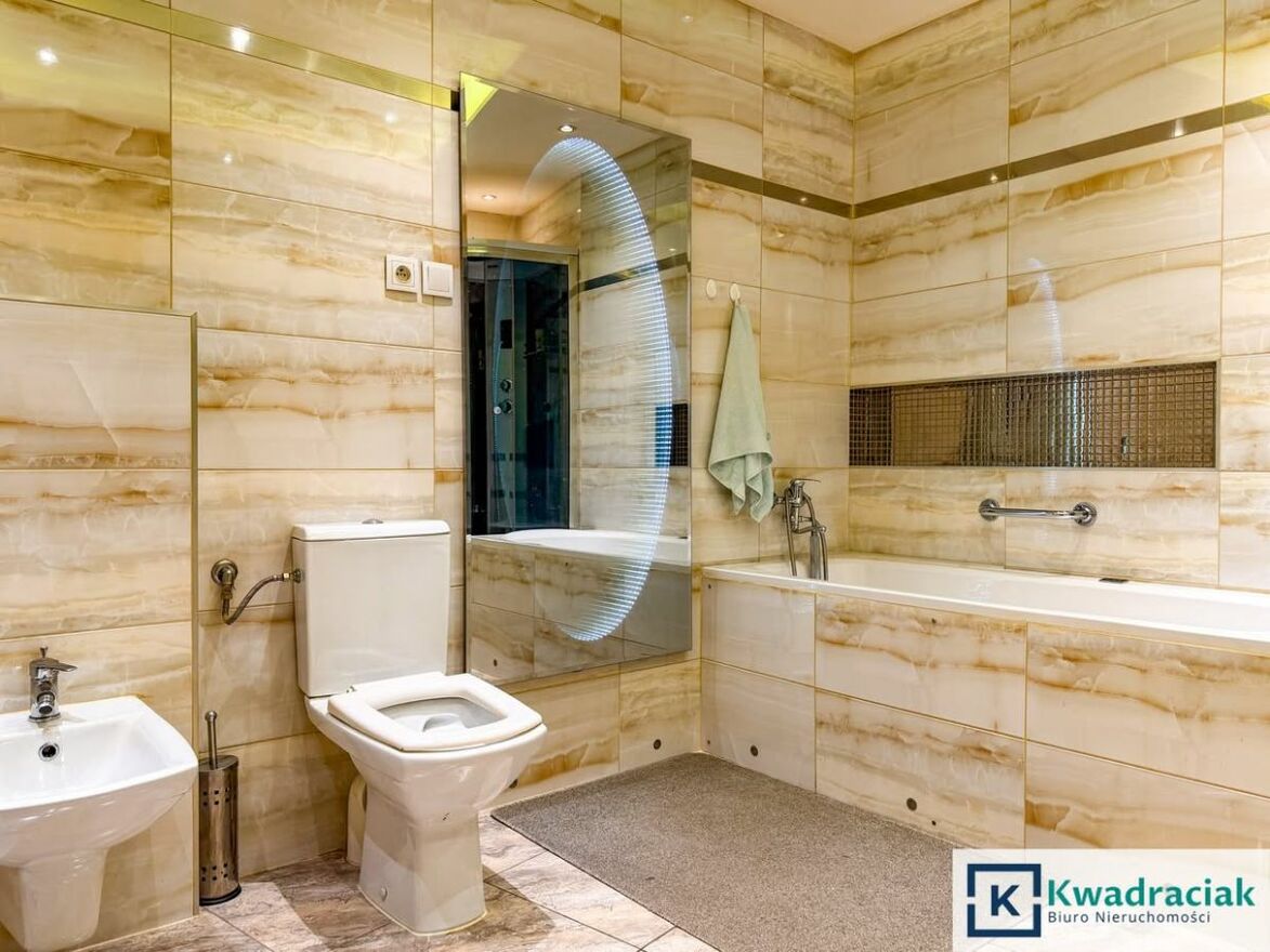Łazienka oraz salon zostały wyremontowane generalnie. W łazience zastosowano wodne oraz elektryczne ogrzewanie podłogowe, dodatkowo grzejnik drabinkowy. Ciepła woda ogrzewana jest z pieca gazowego.