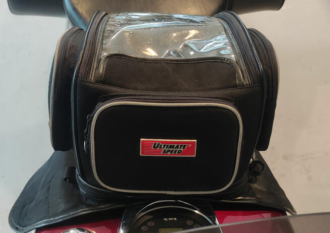 4Torba na zbiornik paliwa, ze śladami używania. Posiada duży otwór z przezroczystą folią na dokumenty, trzy duże ...
