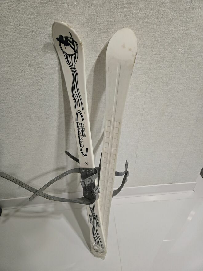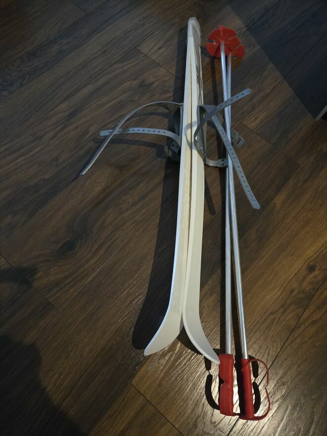Narty dziecięce junior 90cm zapinane z kijkamiBarbara