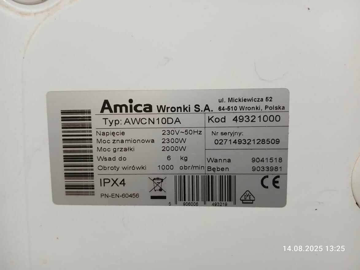 Pralka Amica AWCN10DA - uszkodzona
