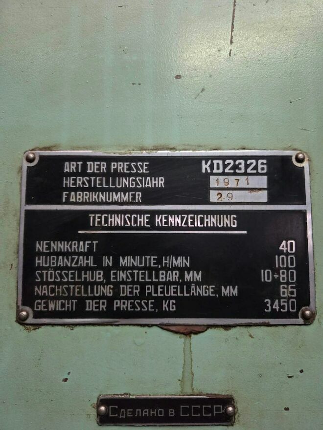 Prasa Mimośrodowa KD2326 – 40 ton - 1971 ZSRR