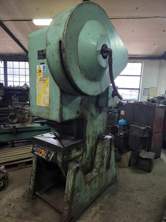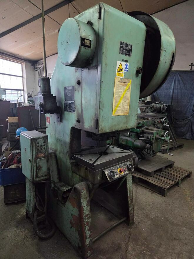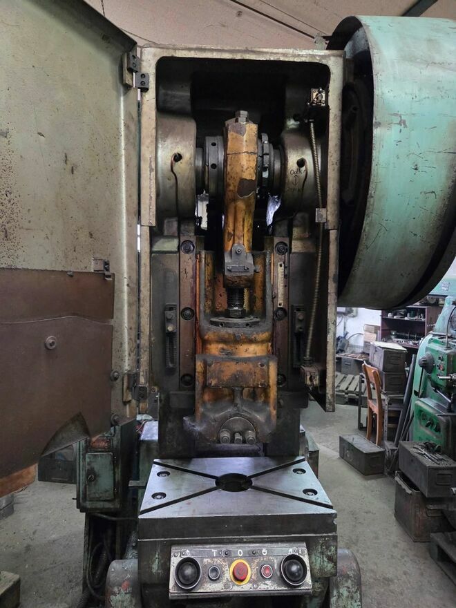 Stan wizualny jak na foto – prasa pracowała w warsztacie, jest kompletna, sprawna. Możliwe zastosowanie: wykrawanie, tłoczenia, gięcia elementów metalowych.