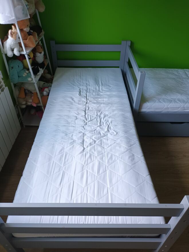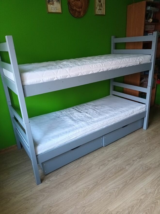 W zestawie: drabinka, barierki ochronne ( górne), dwie szuflady, dwa używane materace ( zadbane, wkladka ( pianka, sprężyna, kokos)